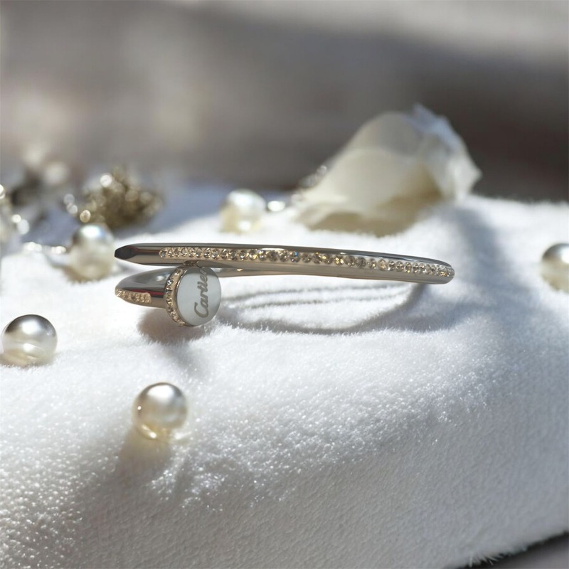 وفي مقدمة الاسوارة شكل دائري صغير مختوم باسم العلامة التجارية CARTIER