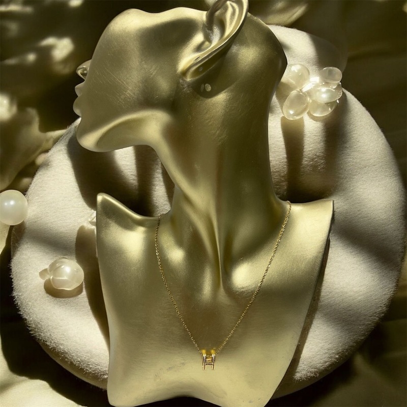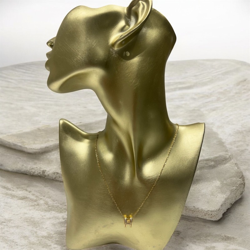 مصمم على شكل دائرة محفورة على شكل حرف H باللون الذهبي مع ستراس فضي
