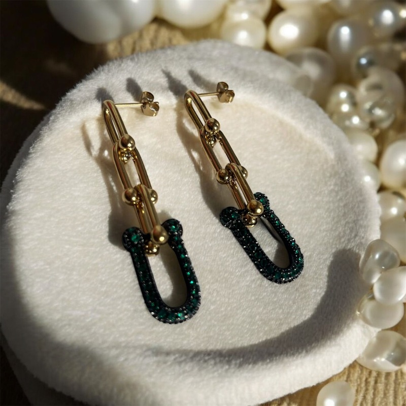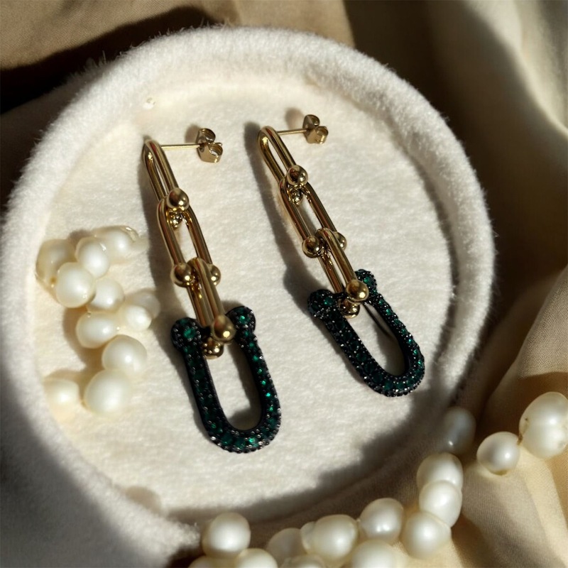 حلق مصمم على شكل حرف U باللون الاخضر مع ستراس